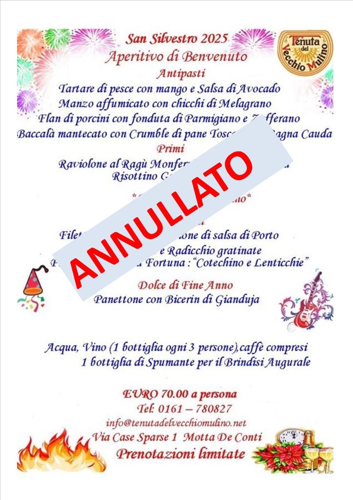 Siamo spiacenti di comunicare che per cause di forza maggiore l’evento del 31 dicembre è stato ANNULLATO Vi aspetteremo il prossimo anno
